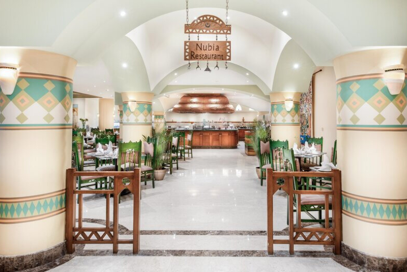 Gastronomisch bietet das Steigenberger Nile Palace ein reichhaltiges Angebot. Neben einem Buffetrestaurant stehen den Gästen vier À-la-carte-Restaurants mit internationaler, italienischer, orientalischer und thailändischer Küche zur Verfügung. Eine angemessene Kleidung wird zum Abendessen erwartet.Ausstattung