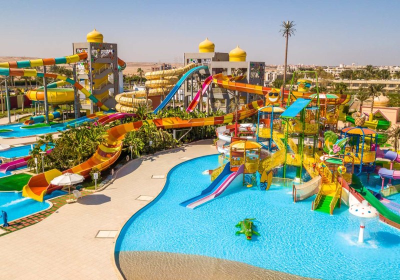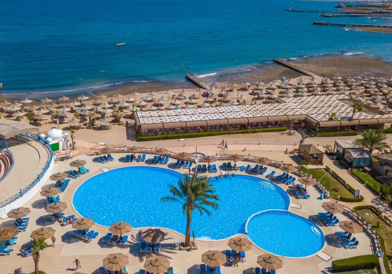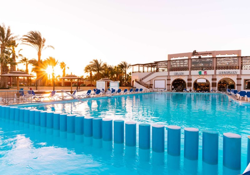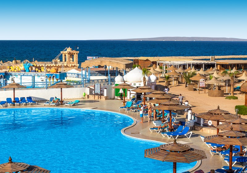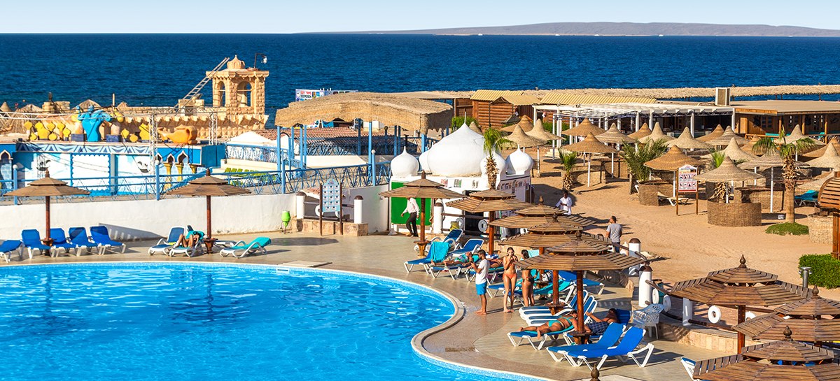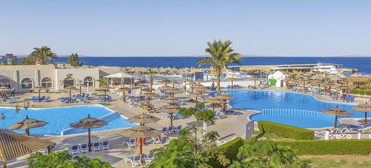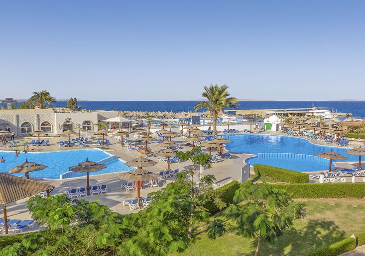 Im Aladdin Beach Resort wohnt Ihr direkt am hoteleigenen Sand- und Kiesstrand südlich von Hurghada. Die Anlage verbindet Strandgefühl mit dem Komfort eines umfangreich ausgestatteten Ferienresorts. Familien entdeckt Ihr Kinderbecken, Spielplatz und Miniclub, während Aktivreisende Sport und das benachbarte Aquapark-Erlebnis einplanen. Abends wartet Unterhaltung von der Show bis zur Diskothek.