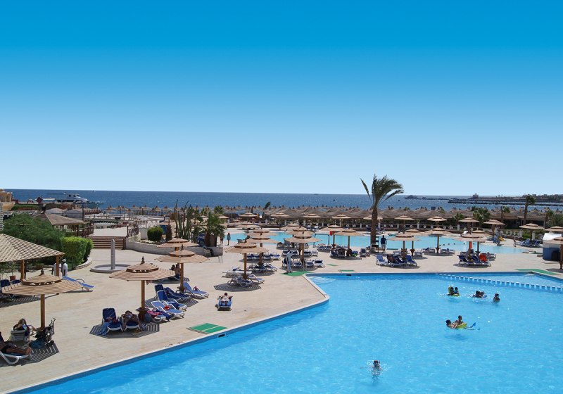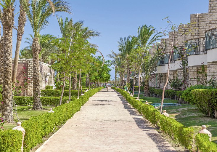 Ihr logiert südlich von Hurghada, direkt an einem rund 150 Meter langen privaten Sand- und Kiesstrand. Der Flughafen Hurghada liegt etwa 10 Kilometer entfernt, das Zentrum rund 20 Kilometer. Nebenan erweitert das Ali Baba Palace mit nutzbaren Einrichtungen und Aquapark Eure Wege. Highlight: Kurze Transferzeit und unmittelbare Strandlage erleichtern Eure Planung.
