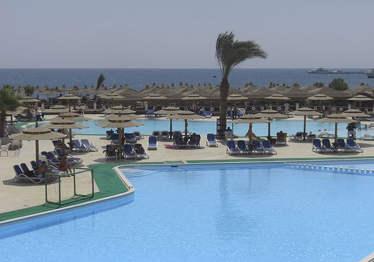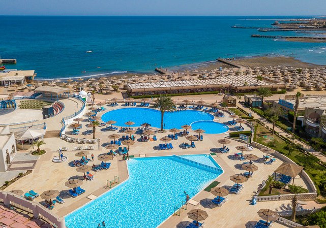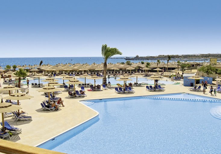 Aladdin Beach Resort verbindet direkte Strandlage südlich von Hurghada mit einer klar strukturierten Infrastruktur aus Pools, Gastronomie und Unterhaltung. Familien profitieren von Miniclub, Kinderbecken und Strandrestaurant, Aktive von Tennis, Fitnessraum und Wassersportcenter am Hotelstrand.