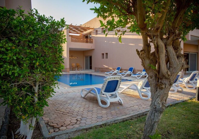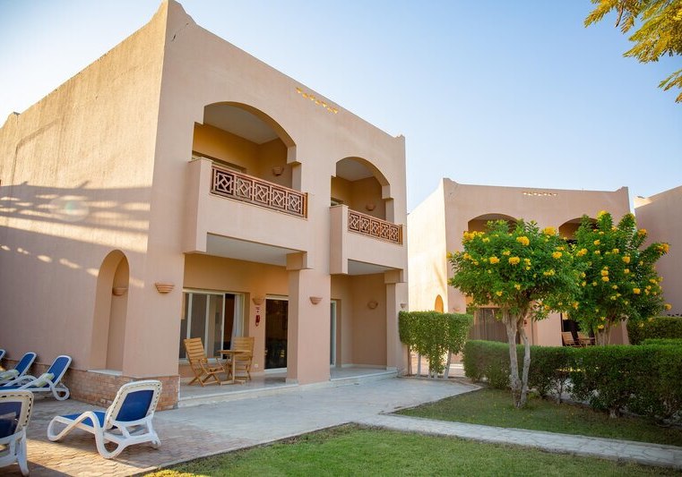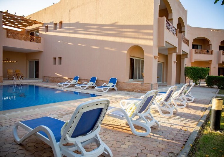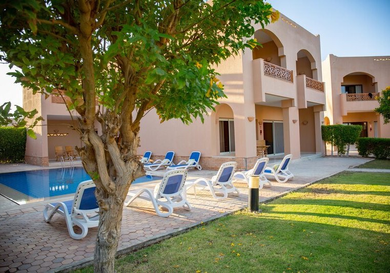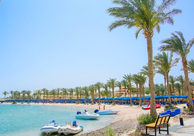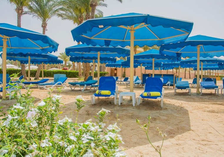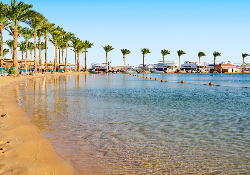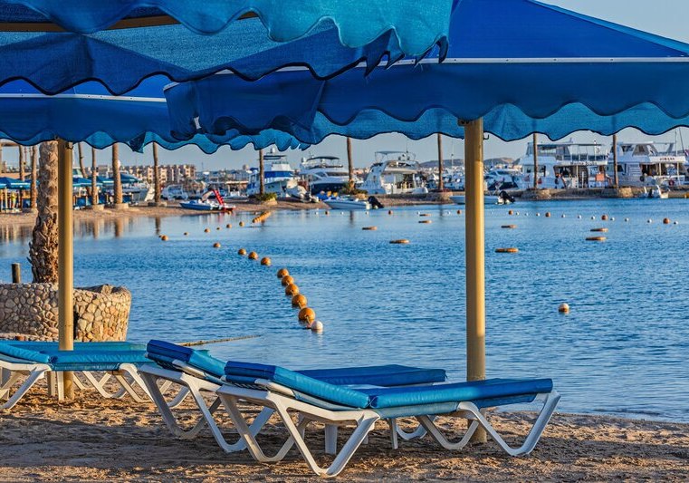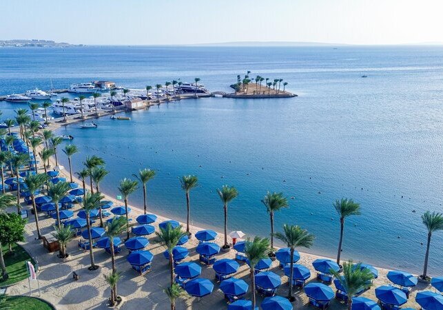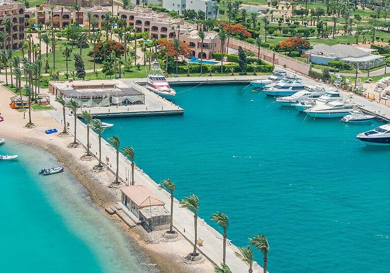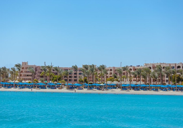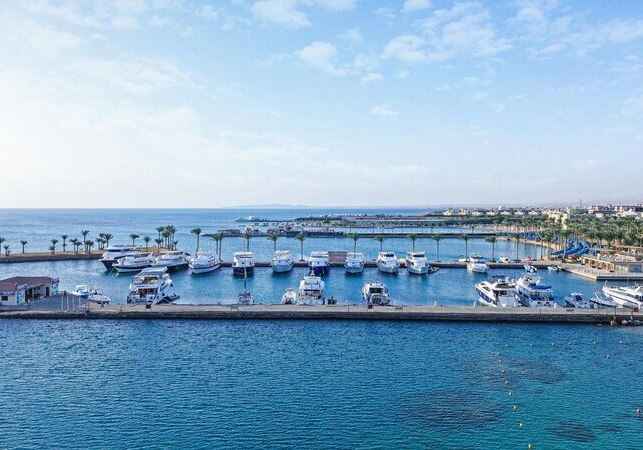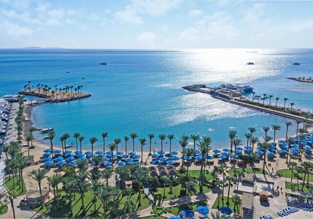 Ihr logiert in Hurghada direkt am Roten Meer, an einer flach abfallenden Badebucht mit feinsandigem Strand und kleinem Hafen – ideal, um vom Zimmer über kurze Wege ans Wasser zu gelangen. Das Zentrum von Hurghada liegt etwa 10 Kilometer entfernt, der Flughafen rund 8 Kilometer. In der Umgebung findet Ihr Strandliegen und Sonnenschirme sowie eine Strandbar. Eine Apotheke erreicht Ihr fußläufig in etwa fünf Minuten, circa 100 Meter entfernt. So verbindet Ihr ruhige Strandstunden mit guter Anbindung an Stadt und Anreise.