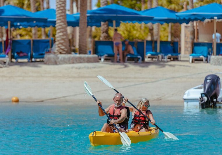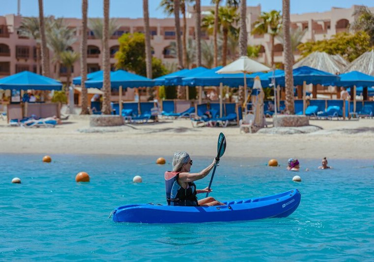 Auf dem Wasser öffnet das Rote Meer die Palette von Schnorcheln und Tauchen bis Windsurfen, Kanu, Kajak, Katamaran, Wasserski oder Parasailing; auch Angeln und Bananenbootfahrten sind möglich. So passt Ihr Euer Programm an: aktiv im Takt der Wellen oder gezielt trainierend zwischen Strand, Pool und späten Abendstunden.