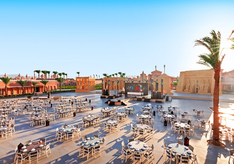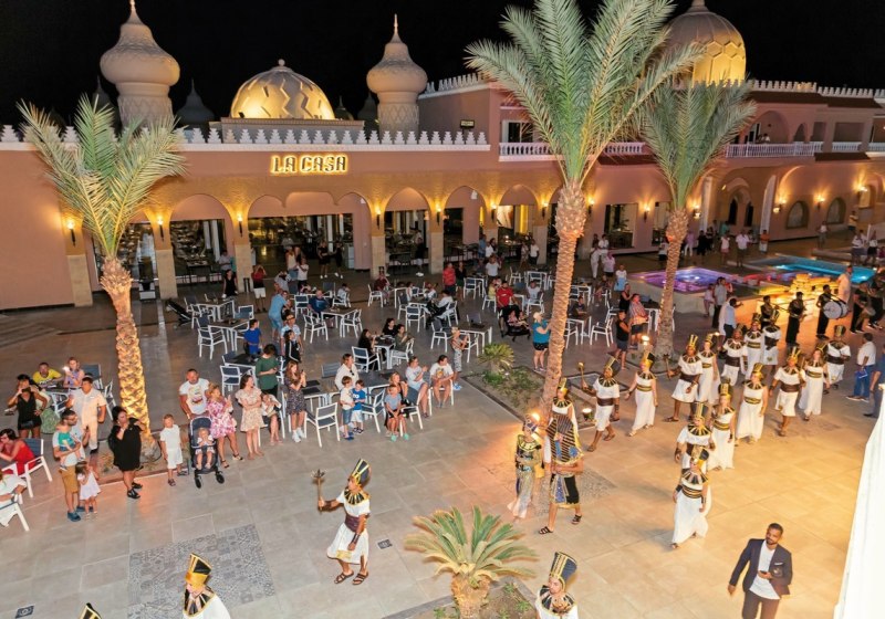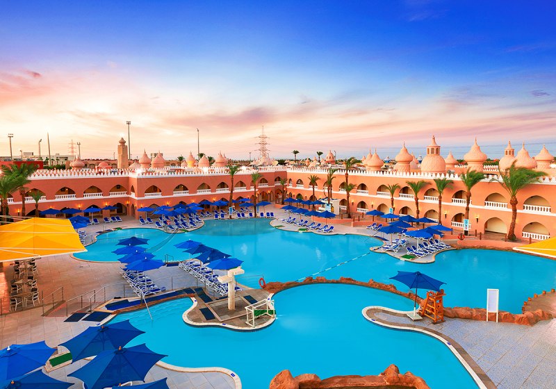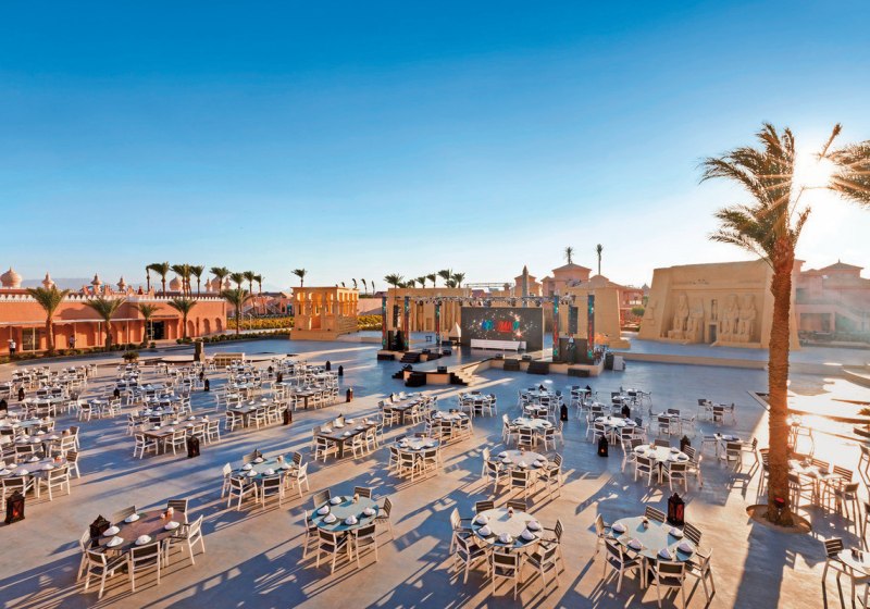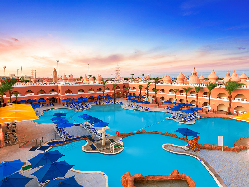 Das Pickalbatros Alf Leila Wa Leila Resort verbindet die Anmutung eines orientalischen Dorfes mit klarer Organisation. Sieben Pools, bequemer Shuttle zum Dana Beach und fünf Restaurants geben Eurem Tag Struktur. Familien profitieren von Kinderpools mit Rutschen und Miniclub, Paare und Freundeskreise von abendlichen Shows und Live-Musik.
