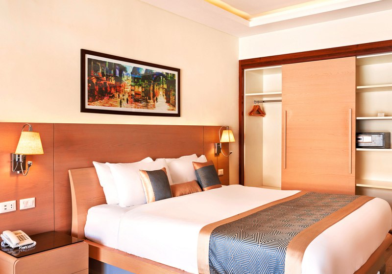Im Bad erwartet Euch eine Dusche mit Haartrockner und Kosmetikartikeln. Für den ersten Kaffee stehen Kaffee-/Teezubereiter bereit. Unterschiedliche Bettoptionen von Twin- bis Queensize-Formaten decken verschiedene Bedürfnisse ab, Zustell- und Kinderbetten sind vorgesehen. Mit Balkonplätzen Richtung Pool oder Garten habt Ihr am Abend kurze Wege zu Bars und dennoch Euren privaten Rückzugsraum.
