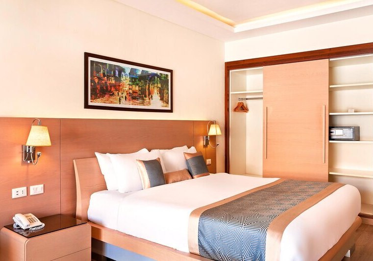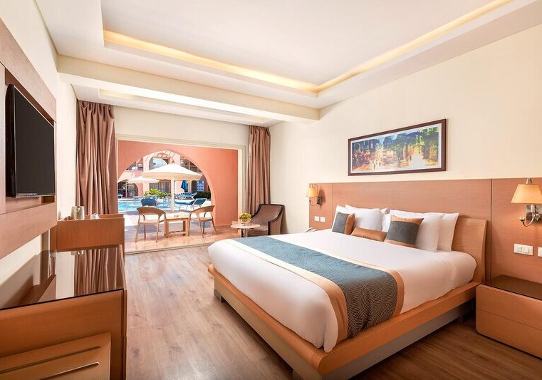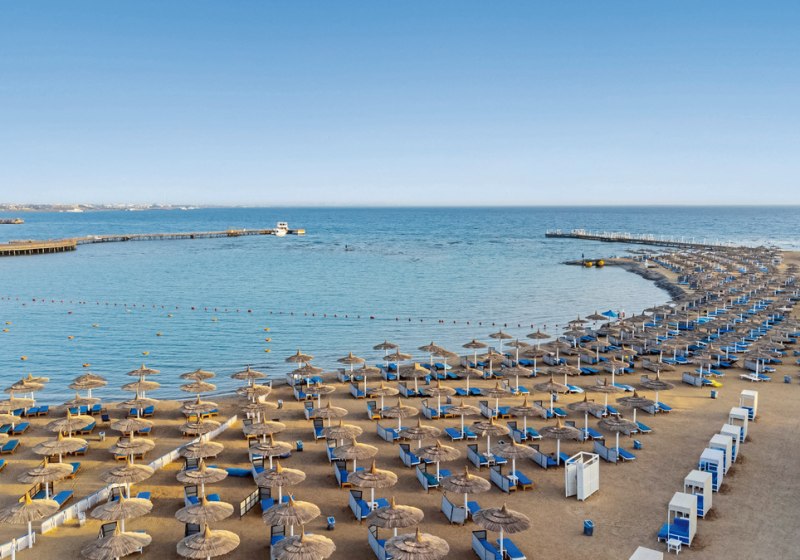 Ihr urlaubt in Hurghada, mit direkter Anbindung an Geschäfte und Restaurants in der Umgebung. Der Sandstrand von Dana Beach liegt etwa 900 Meter entfernt und wird bequem per Shuttlebus erreicht. Bis ins Zentrum von Hurghada sind es rund 17 Kilometer, die Lage bietet damit Ruhephasen im Resort und Zugriff auf die städtischen Angebote. Die Nähe zum Flughafen erleichtert die An- und Abreise. Am Strand warten Liegen und Schirme sowie Wassersportangebote lokaler Anbieter, während die Infrastruktur des Resorts kurze Wege zu Pools, Bars und Restaurants sicherstellt. So kombiniert Ihr Badezeit, Ausflüge nach Hurghada und spontane Einkehrmöglichkeiten ohne lange Transfers.
