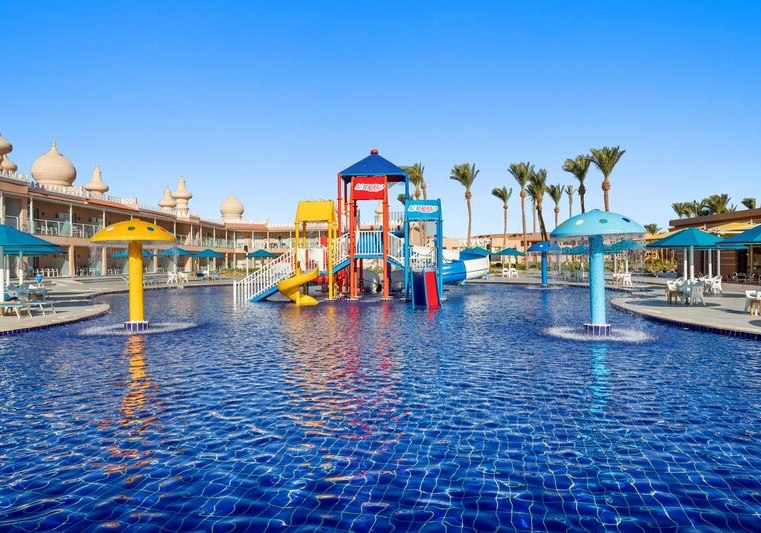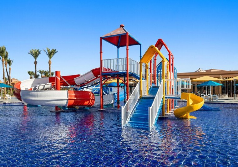 - Poolvielfalt: Sieben Pools, teils beheizt, plus Kinderbecken mit Rutschen.