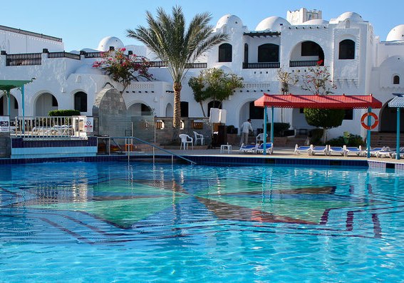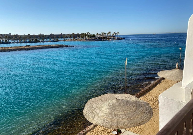 Ihr wohnt in Hurghada, etwa 3 km vom Stadtzentrum und rund 10 km vom Flughafen entfernt. Die Lage gilt als ruhig und punktet mit der privaten Sandbadebucht am Roten Meer. Zur Hurghada Marina sind es ca. 1 km beziehungsweise 15 Gehminuten. Bushaltestelle und ÖPNV liegen in etwa 100 m Entfernung, die Apotheke erreicht Ihr nach rund 50 m.