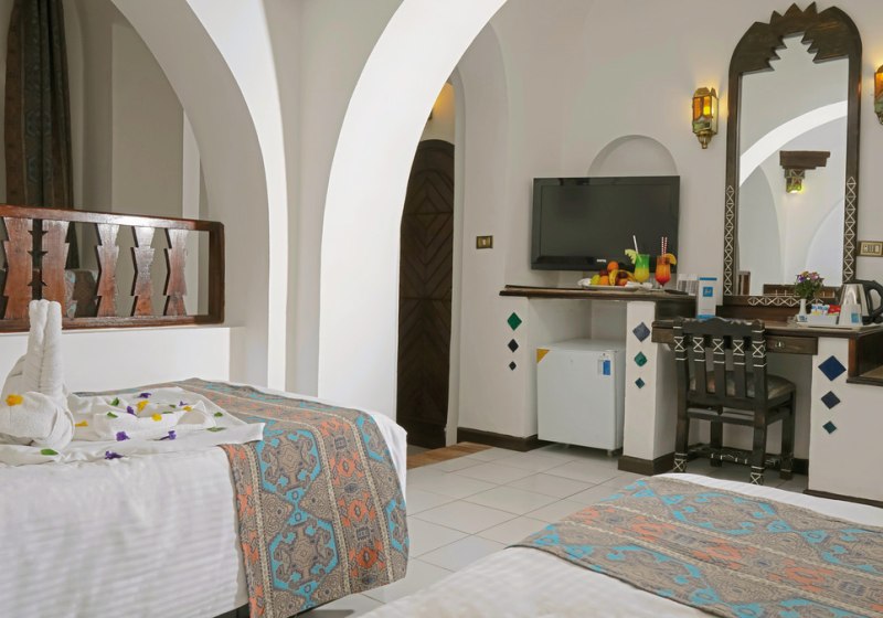 Die Anlage verteilt 296 Zimmer auf ein Hauptgebäude und fünf flache Nebengebäude, erneuert 2022, mit kurzen Wegen zu Restaurants, Bars und Strand. Familien, Paare und Strandliebhaber finden klare Strukturen: Kinderclub, Spielplatz, Fitnessstudio sowie ein internationales Animationsprogramm mit Shows. Highlight: Private Badebucht mit Hausriff, ideal zum entspannten Schwimmen und Schnorcheln.