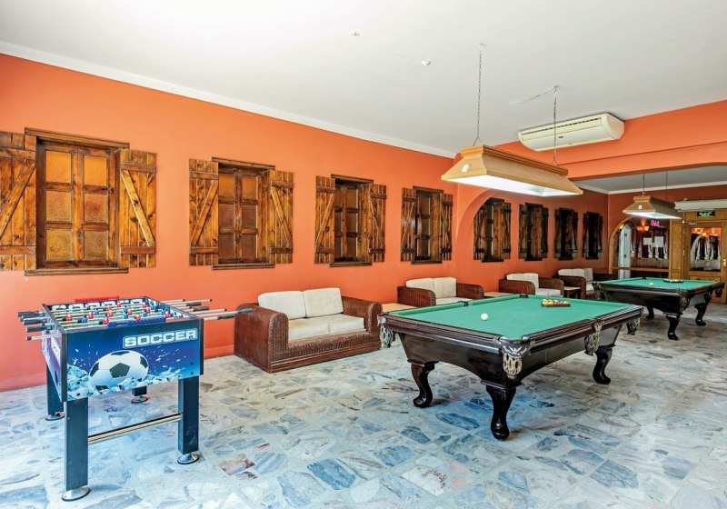 Tagsüber begleitet Euch ein Animationsprogramm, das die Anlage dezent belebt: kleine Aktivitäten, freundliche Ansprache, ein klarer Fokus auf Ferienrhythmus zwischen Strand, Pool und Sport. Kinder drehen am frühen Abend in der Minidisco auf, bevor Ihr die Shows auf der Bühne ansteuert. Die Abendunterhaltung ist gesetzt und planbar, mit wechselnden Programmpunkten, die die Gemeinschaftsbereiche zum Treffpunkt machen.