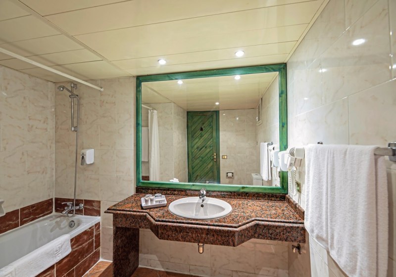 Praktische Services wie Wäscherei, Arztservice, Friseur, Shops und Geldautomat liegen auf dem Gelände. Mietwagenverleih, Tour-Desk und Parkplatz erleichtern die Planung. Check-in ist ab 14:00 Uhr, Check-out bis 12:00 Uhr. Kreditkarten von VISA, Mastercard und American Express werden akzeptiert. Die Anlage ist grosszügig und übersichtlich, mit Terrassen, Gärten und ruhigen Sitzplätzen zwischen den Wegen. Highlight: Voller Strandservice mit Liegen, Schirmen und Tüchern inklusive.