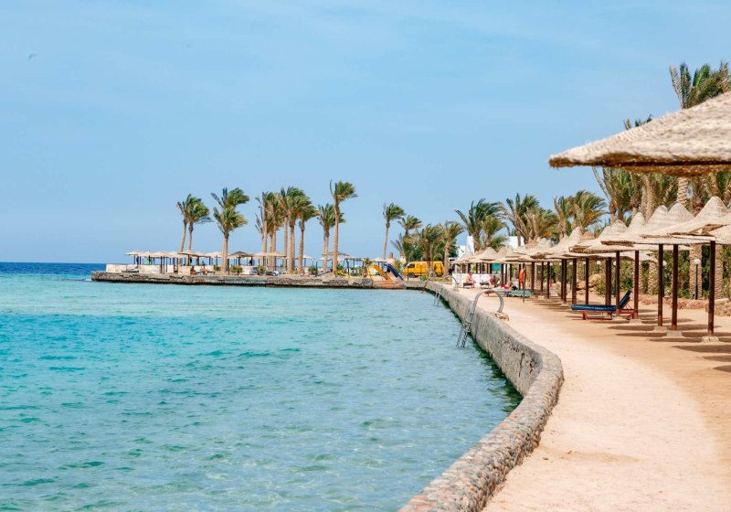 Ihr wohnt in Hurghada direkt am langen Strand, flankiert von zwei künstlichen Lagunen und einer Badehalbinsel. Das Hausriff liegt voraus – ideal für kurze Wege ins klare Wasser. Zum Stadtzentrum sind es etwa 3 km, der Flughafen liegt rund 8 km entfernt. So kombiniert Ihr Badezeit mit schnellen Transfers und spontanen Abstechern in die Stadt. Orientierung fällt leicht: Meer vorne, Gärten und Pools im Rücken, Bars und Restaurants mittendrin. Diese Struktur schafft Übersicht und kurze Wege im Tagesablauf.