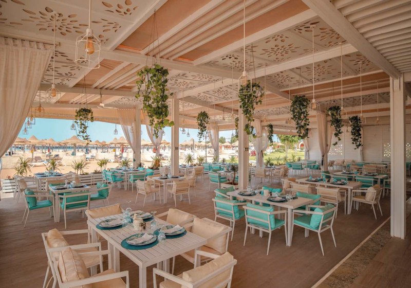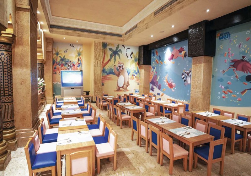 Kulinarisch wählt Ihr zwischen dem Giardino-Buffet und fünf À-la-carte-Restaurants: italienische, ägyptische, mongolische Küche, Burger und Fusionsküche. Ergänzend warten Nasaya Beach Bar, Gamila Beachrestaurant und zahlreiche Bars von Lobby bis Pool. Live-Kochen setzt Akzente am Buffet.