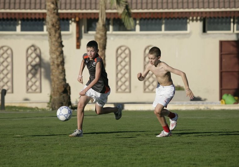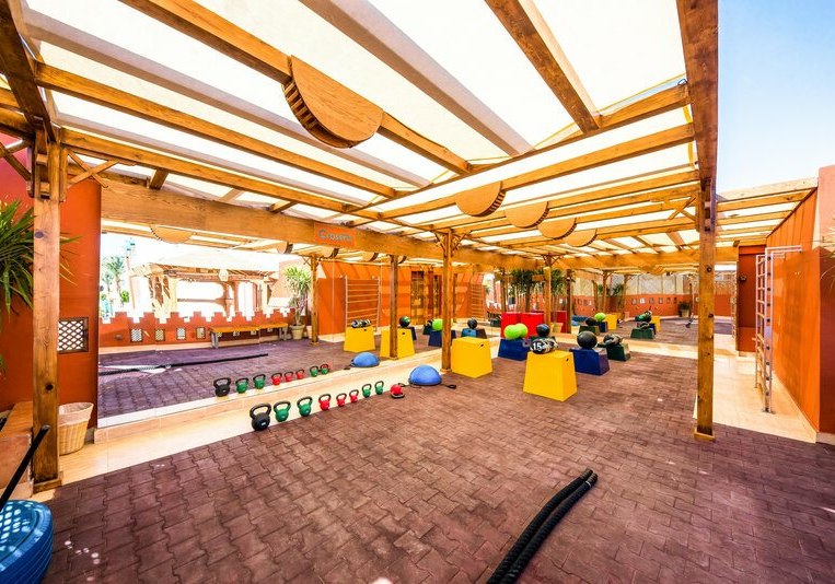 Für Aktivzeiten steht Euch ein Fitnessraum ab 16 Jahren bereit. An Land trainiert Ihr mit Aerobic, Yoga und Gymnastik und nutzt Tischtennis, Darts, Boccia, Beachvolleyball sowie ein Rasen-Fußballfeld. Tennisplätze sind tagsüber inklusive; Flutlicht ist gegen Gebühr buchbar, ebenso Paddle Tennis.