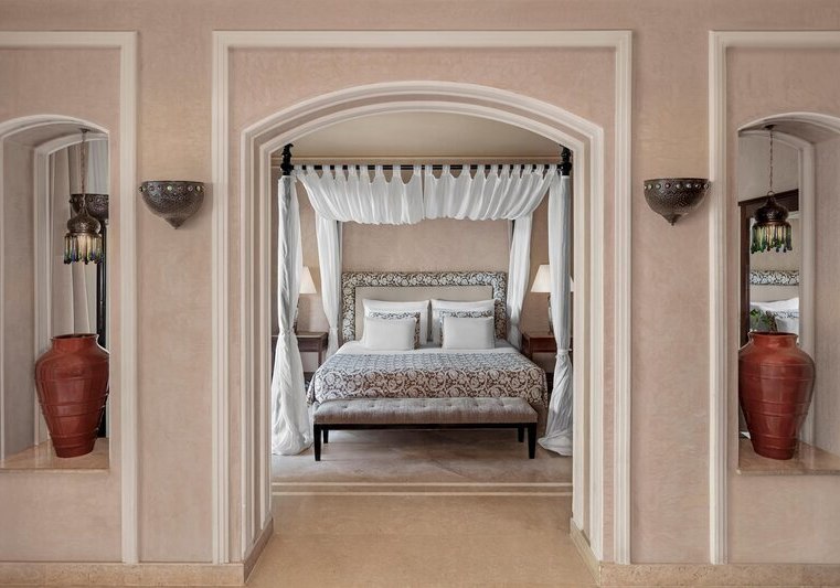 Mehr Raum bieten die Juniorsuiten mit etwa 64 m², separatem Schlafzimmer, Wohnraum mit Verbindungstür und zwei Bädern. Spitze für Privatsphäre: die Royal Suite mit ca. 80 m², King-Size-Bett, eigener beheizbarer Pool und Terrasse. Viele Wohneinheiten öffnen sich zu Garten- oder Poolblick – für einen direkten Bezug zur Anlage, der den Tagesrhythmus angenehm entschleunigt.