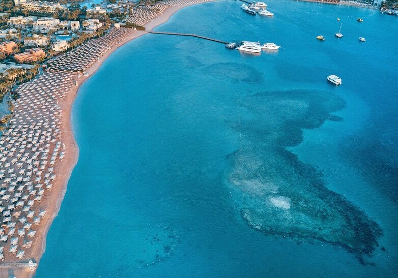 In Madinat Makadi gelegen, wohnt Ihr im JAZ Makadi Star & Spa ruhig und dennoch nah am Geschehen. Der Strand der Makadi Bay ist etwa 400 Meter entfernt, der Weg führt bequem durch die Anlage Richtung Meer. Das hoteleigene Hausriff hebt die Bucht für Schnorchler und Taucher hervor. Der Flughafen Hurghada liegt rund 35 Kilometer entfernt – die Anreise bleibt übersichtlich planbar.