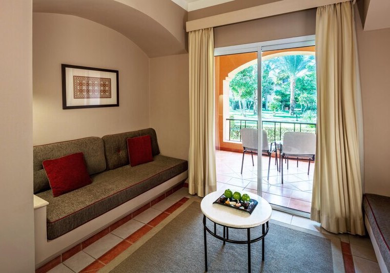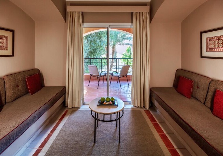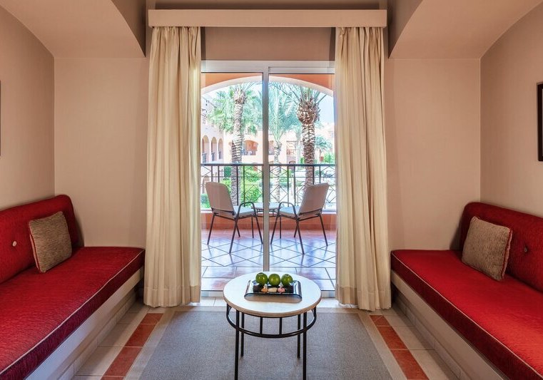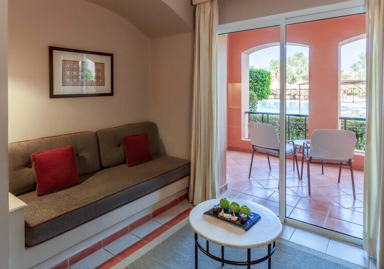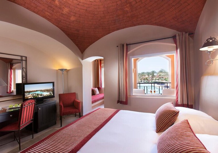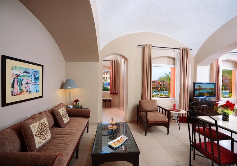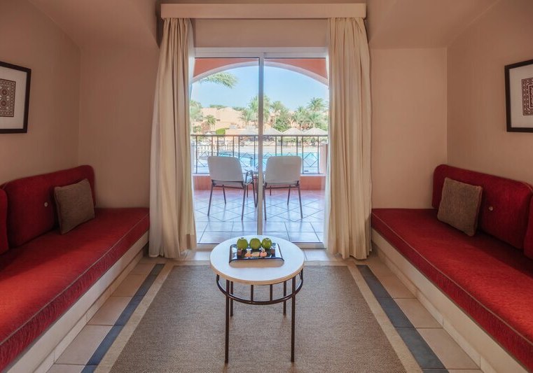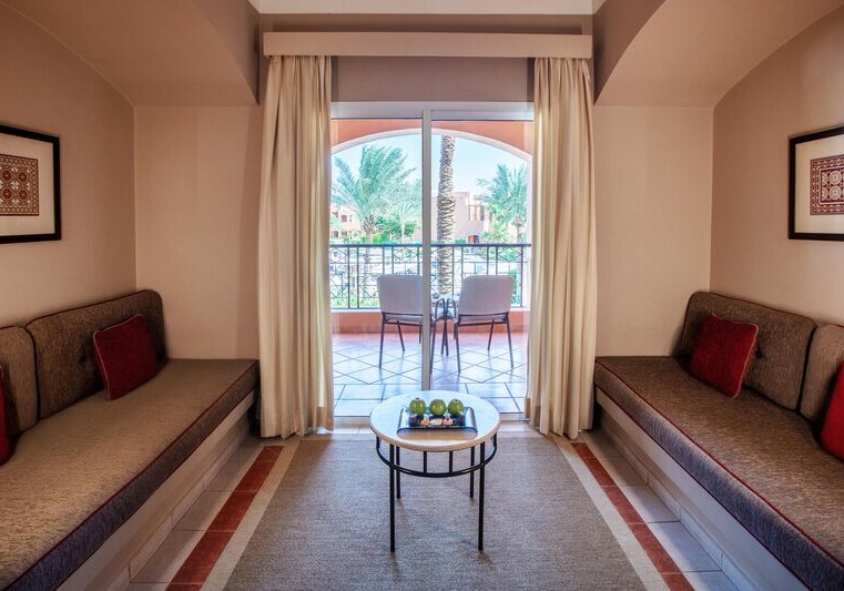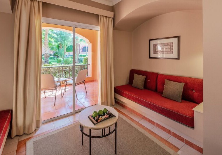 Ihr wohnt in Madinat Makadi an der Makadi Bay, ruhig und autofrei gelegen. Der private Strand ist etwa 250 Meter entfernt, der Flughafen Hurghada rund 30 Kilometer. Einkaufen könnt Ihr nach etwa 100 Metern, ein 18-Loch-Golfplatz liegt ungefähr 600 Meter entfernt.