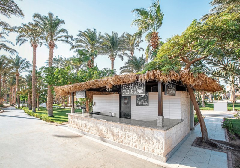 Im Herzen: Rezeption, Lobby und Speiseraum, dazu Poolbar, Snackbar, Shops, Supermarkt und Souvenir-Bereich. Ein Amphitheater bildet den Rahmen für Shows. Praktisch sind Gepäckaufbewahrung, Wäscherei, Geldautomat, Arztservice und hoteleigener Shuttleservice innerhalb der Anlage.