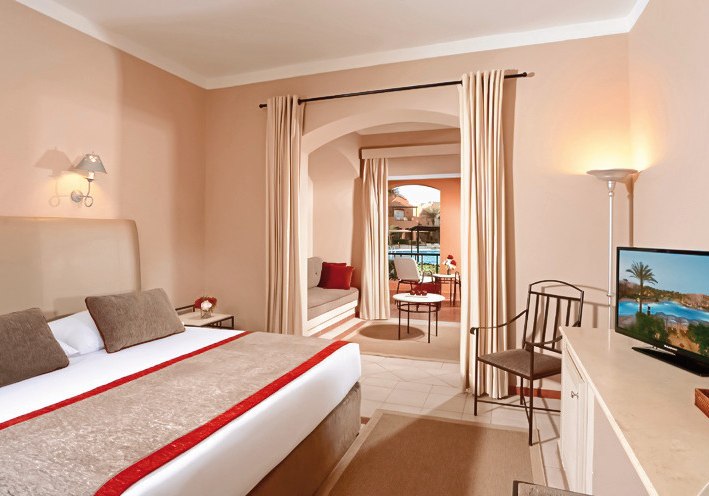 Ihr wohnt in Zimmern mit Dusche, Föhn, Sat-TV, Telefon, Safe und Klimaanlage. WLAN steht bereit, Minibar ist gegen Gebühr verfügbar. Kaffee- und Teezubereiter, Wasserkocher und Fliesenboden sorgen für unkomplizierten Komfort. Balkon oder Terrasse öffnen den Blick in Garten- oder Poolbereiche.
