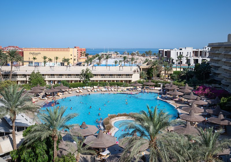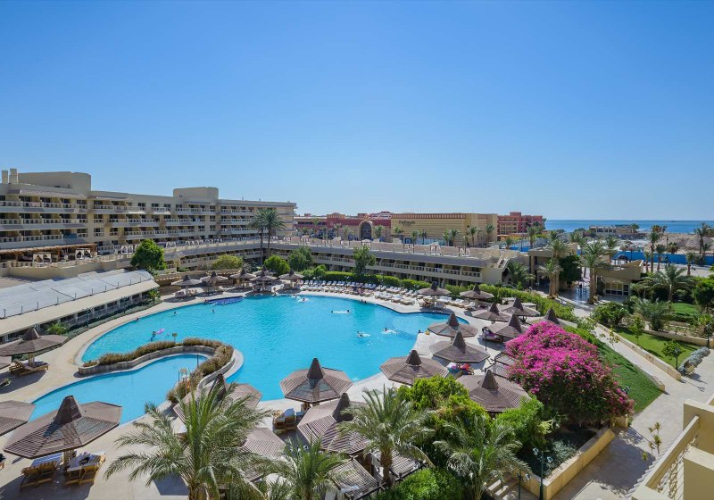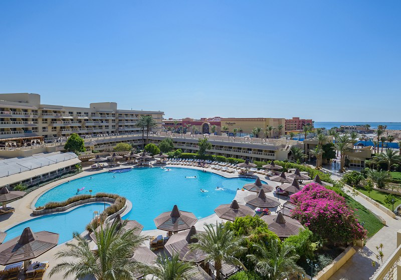 Ihr wohnt in Hurghada in zweiter Strandreihe direkt an der Promenade mit Geschäften. Der 400 Meter lange Sandstrand liegt etwa 3 Gehminuten entfernt, die Wege sind kurz und geradlinig. Der Flughafen Hurghada ist ca. 4 km entfernt, Downtown erreicht Ihr nach rund 10 km, die Altstadt nach etwa 7 km.