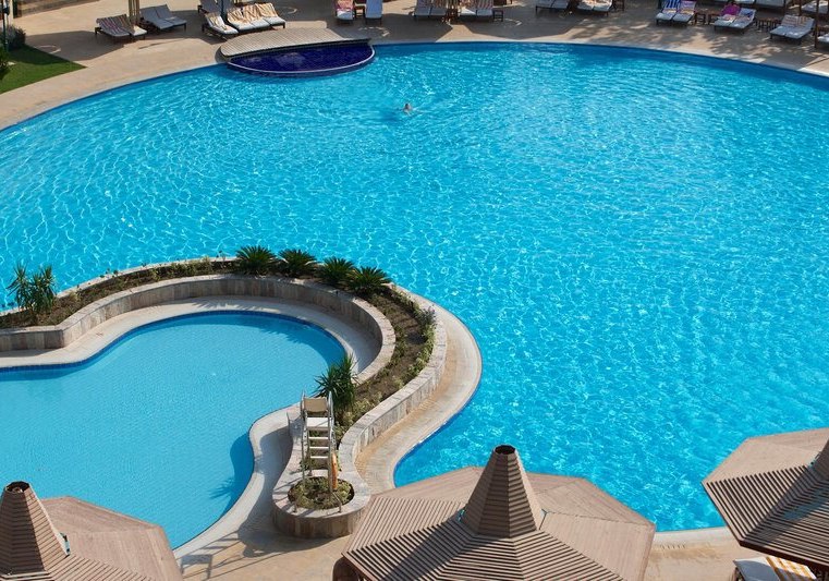 - Weitläufige Pools: Mehrere Außenpools mit Liegen, Auflagen, Schirmen und Badetüchern.