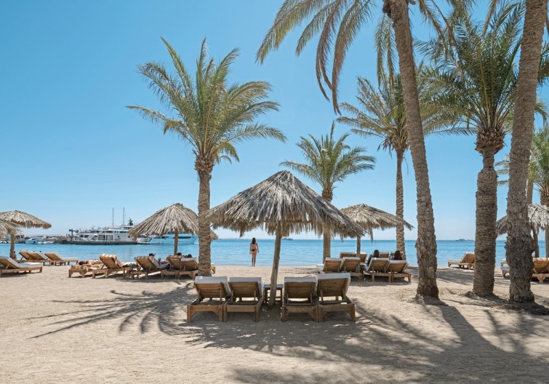 - Strandsetup: Liegen, Auflagen, Schirme und Badetücher am Strand inklusive.
