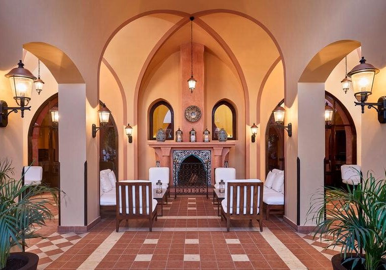 Die öffentlichen Bereiche sind klar strukturiert: Lobby mit Rezeption, Shops, Beduinenzelt, Bibliothek und Sonnenterrassen. Drei Außenpools, einer beheizbar, dazu Badetücher, Liegen und Sonnenschirme an Pool und Strand. WLAN ist in der Basis frei, Highspeed kostenpflichtig. Wäscheservice, Hotelarzt und Geldautomat sind verfügbar, Kreditkarten Visa und Mastercard werden akzeptiert. Highlight: Drei Pools plus Strandbereiche mit kompletter Liege- und Schirminfrastruktur.