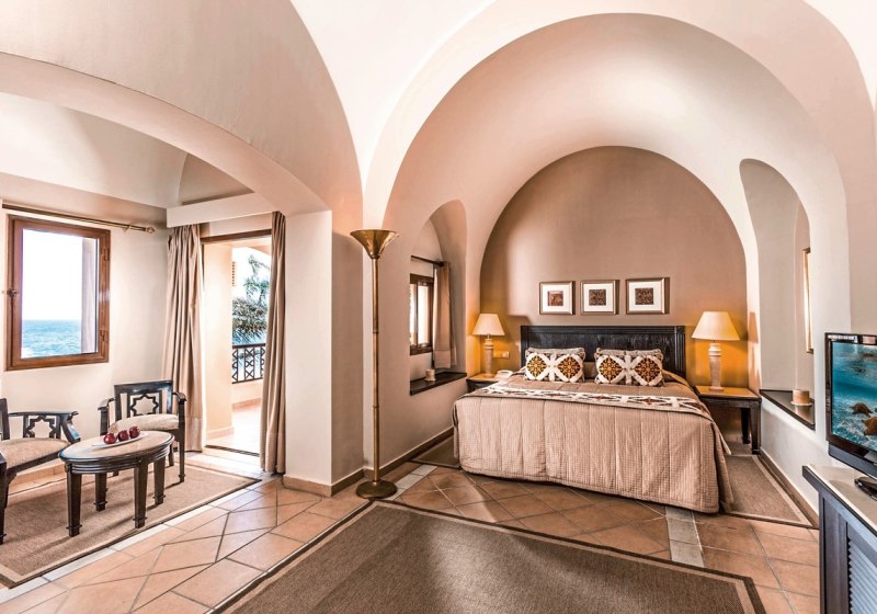 Die Atmosphäre ist gepflegt und unaufgeregt. 364 Zimmer verteilen sich auf Gebäude mit Balkonen oder Terrassen, viele mit Blick in den Garten, auf den Pool oder das Meer. In der Lobby mit Rezeption trefft Ihr auf mehrsprachigen Service, dazu Shops, Beduinenzelt und ein Amphitheater für Abendshows. Kreditkarten wie Visa und Mastercard werden akzeptiert, ein Geldautomat befindet sich im Haus. Das Baujahr 2001 und die Renovierung 2020 prägen einen soliden, zeitgemäß gepflegten Eindruck.