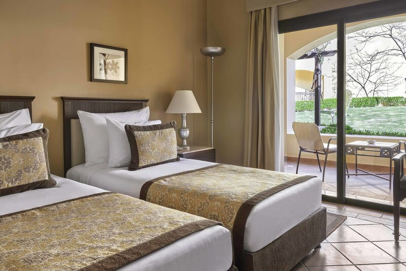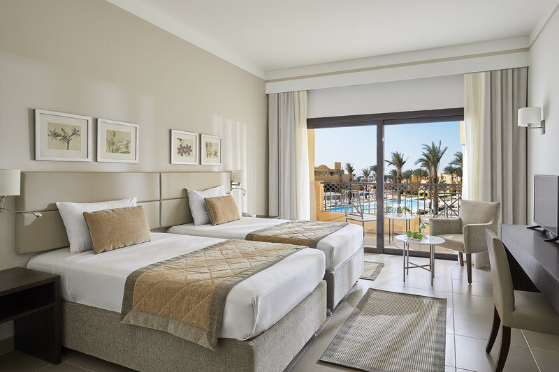 Die Doppelzimmer messen etwa 34 m² und sind mit Dusche, WC, Föhn, Klimaanlage, Telefon, TV, Minibar, Tee-/Kaffeezubereiter, Rauchmelder und Safe ausgestattet. Ein Balkon oder eine Terrasse gehört dazu, Buchungsoptionen mit Pool- oder Meerblick sind verfügbar.