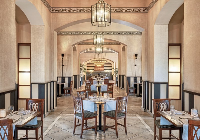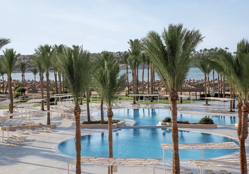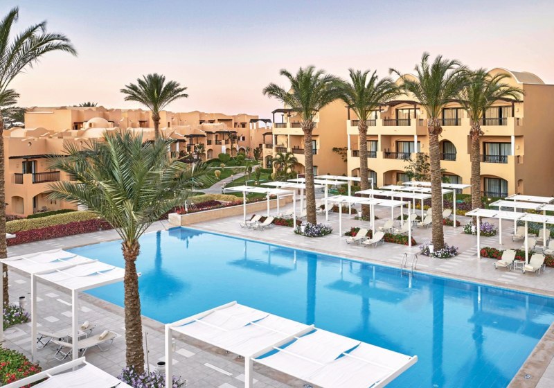Im Jaz Solaya wohnt Ihr in Madinat Coraya direkt an einer geschützten Bucht mit hoteleigenem Strand. Die Anlage wirkt großzügig, mit drei Außenpools, ruhigen Chill-out-Zonen mit Balibetten und viel Platz zum Verweilen. Familien finden geräumige Zimmer, Kinderclub und Kinderpool; Aktivreisende nutzen Fitnessraum, Tennisplatz und das Tauchcenter.