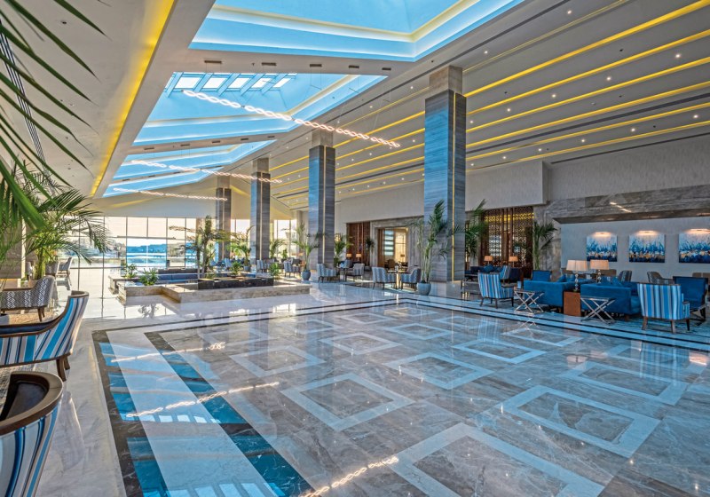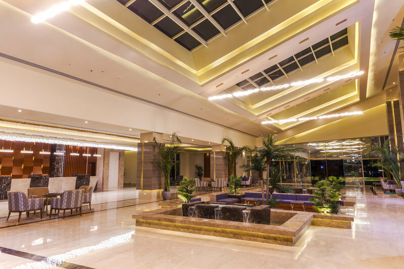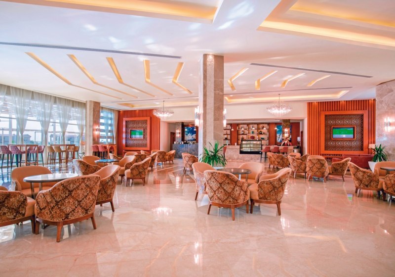 Service- und Aufenthaltsbereiche reichen von Rezeption und Lobby über Theater, Bars und Poolbar bis zu Business-Center und Konferenzraum. Ein Spielplatz, Kinderbecken und ein Spielzimmer setzen familienfreundliche Akzente. Medizinischer Service, Wäscherei und Transferangebote sorgen für zusätzliche Sicherheit und Komfort. Highlight: 17 Pools plus Aquapark mit neun Rutschen und bereitgestellten Strandservices.