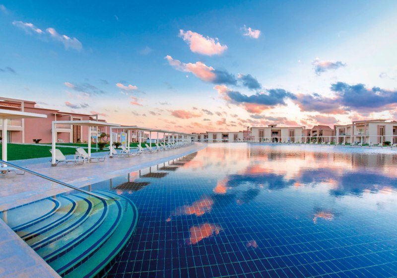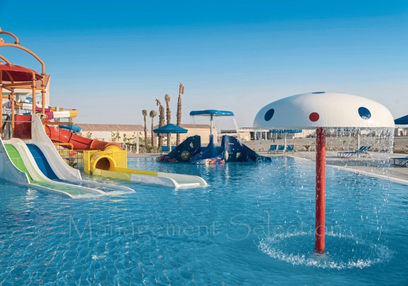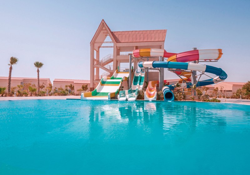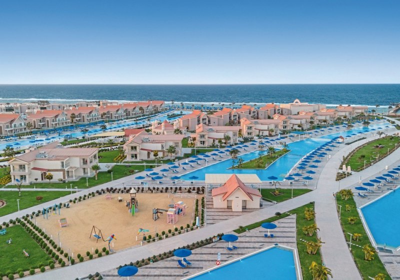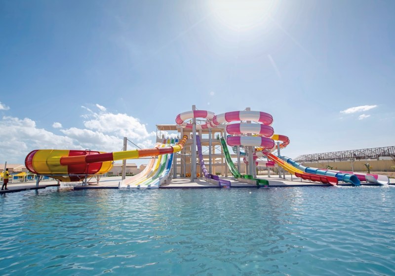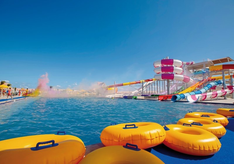 Die Resort-Infrastruktur ist umfassend: 17 Pools, davon zwei im Winter beheizbar, ein großer Aquapark mit neun Wasserrutschen sowie großzügige Sonnenterrassen prägen das Bild. Liegen, Sonnenschirme und Handtücher sind am Pool und Strand bereitgestellt. WLAN ist in Zimmern und öffentlichen Bereichen kostenfrei. Die Shopping-Arkade, ein Geldautomat und verschiedene Geschäfte ergänzen die Versorgung vor Ort.