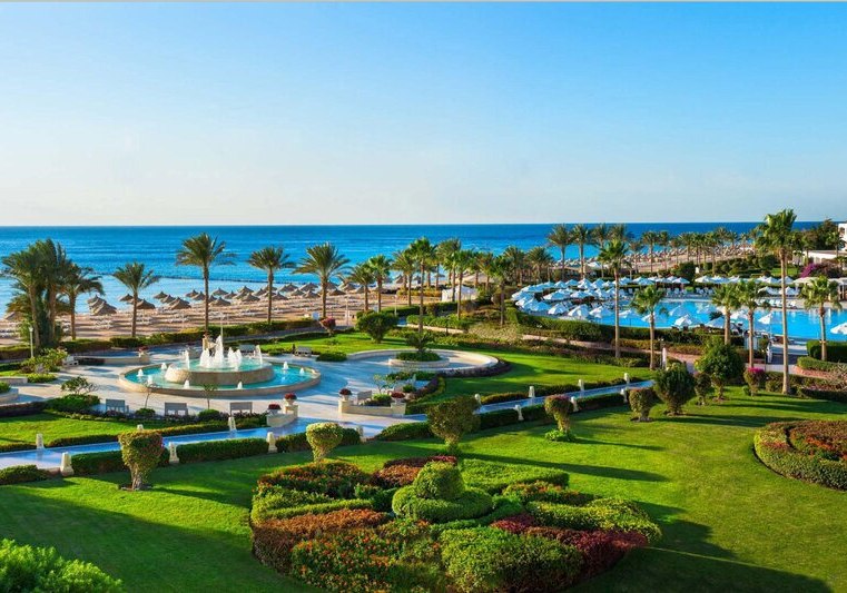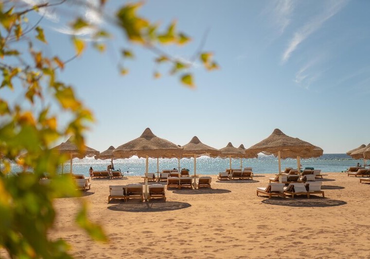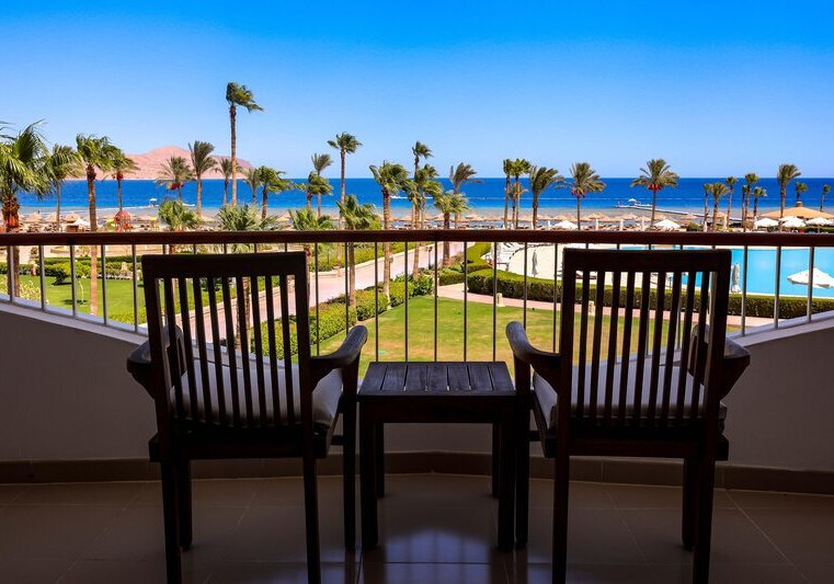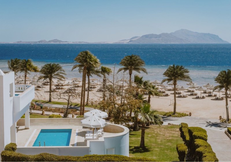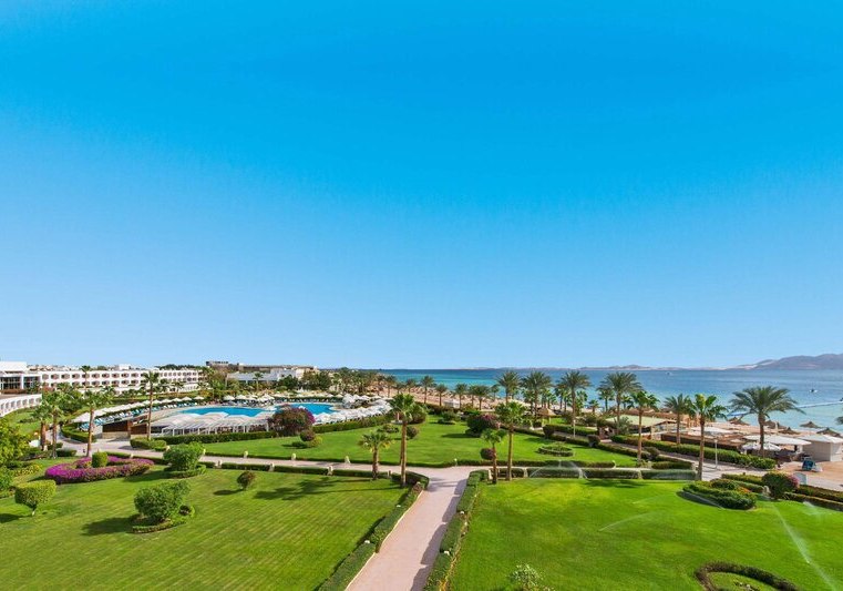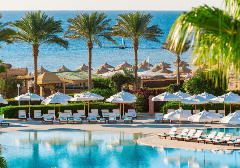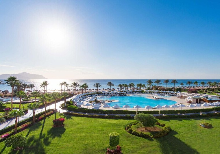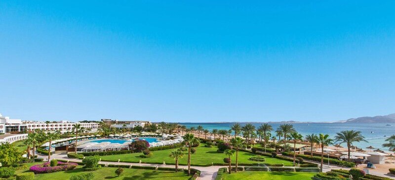 Das Resort liegt in der Ras Nasrani Bay von Sharm el Sheikh, direkt am 600 Meter langen Privatstrand mit vorgelagertem Korallenriff. Der Sharm el Sheikh International Airport ist etwa 8 Kilometer entfernt, die Naama Bay rund 15 Kilometer. Ihr bleibt nah am Meer und gut angebunden für Ausflüge.