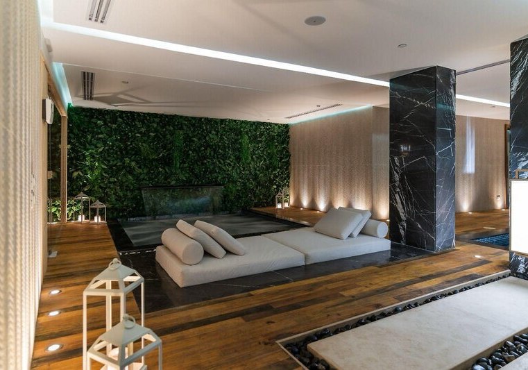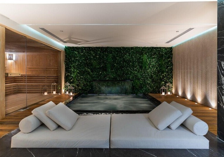 - Spa: Sauna, Dampfbad, Jacuzzi und türkisches Bad kompakt vereint.