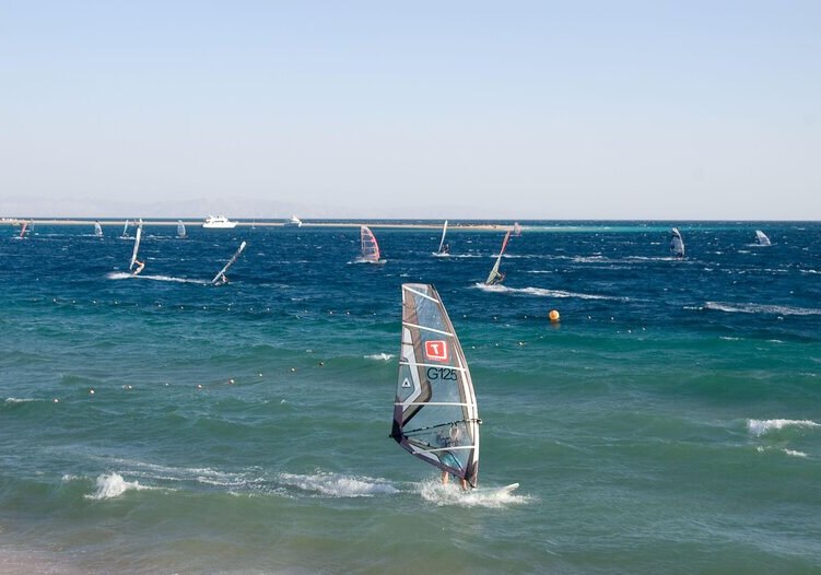 Am Strand des Swiss Inn Resort Dahab nutzt Ihr ein breites Wassersportangebot: Schnorcheln, Tauchen, Kitesurfen, Wellenreiten, Segeln, Wasserski, Banana Boat und Tretboot stehen zur Auswahl. Wer an Land bleiben möchte, spielt Beachvolleyball oder trainiert im Fitness-Studio.