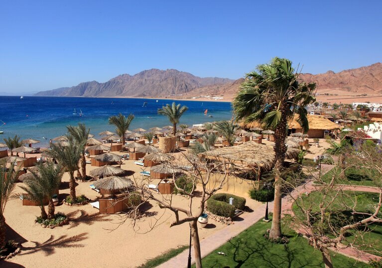Im Swiss Inn Resort Dahab erlebt Ihr ein entspanntes Strandresort in Dahab mit direktem Bezug zum Roten Meer. Der private Sandstrand liegt nur etwa 50 Meter entfernt, Sonnenliegen und Sonnenschirme stehen dort wie am Pool kostenfrei bereit. Die Anlage ist übersichtlich und freundlich organisiert, mit 150 Zimmern, die Euch Rückzug und Ruhe ermöglichen.