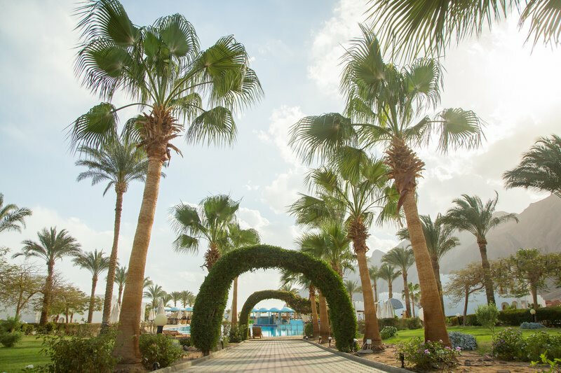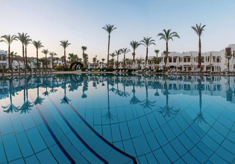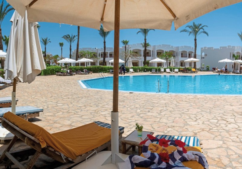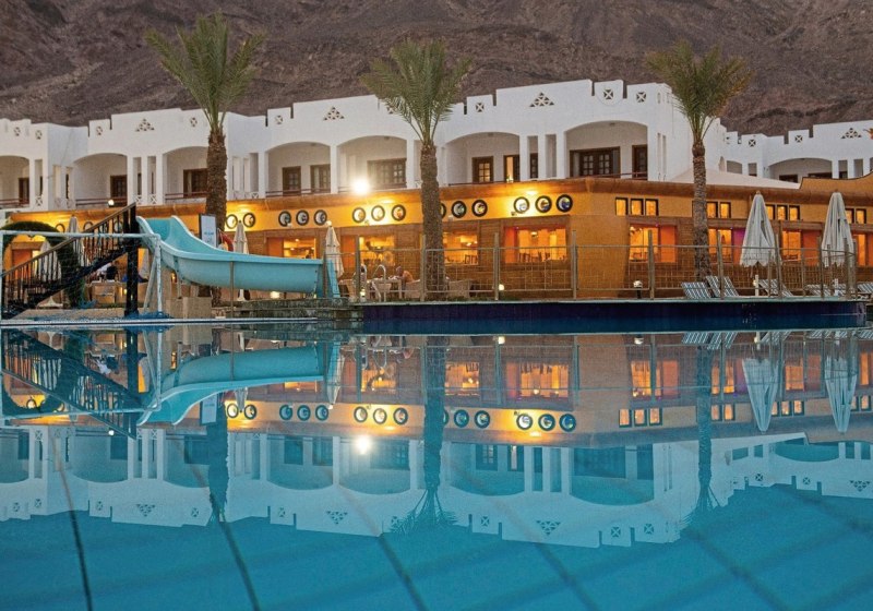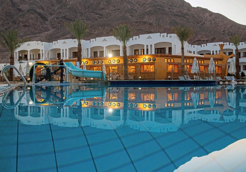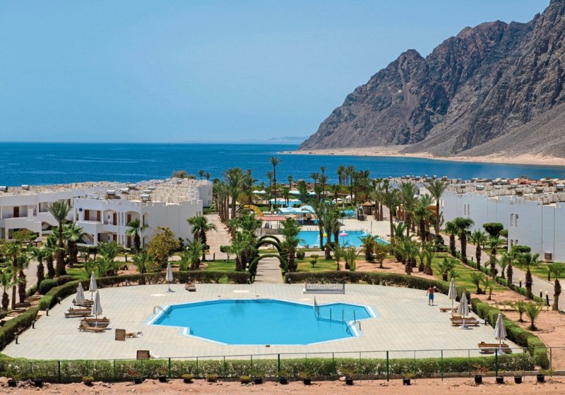 Happy Life Village kombiniert direkte Strandlage in Wady Quonay mit eigenem Hausriff, drei Pools und familienfreundlichen Bereichen. Zwei Buffetrestaurants und mehrere Bars strukturieren Eure Tage, abends sorgen Shows und Live-Musik für klare Programmpunkte. Der Shuttle verbindet Euch bequem mit Dahab.