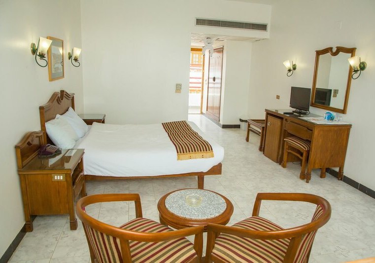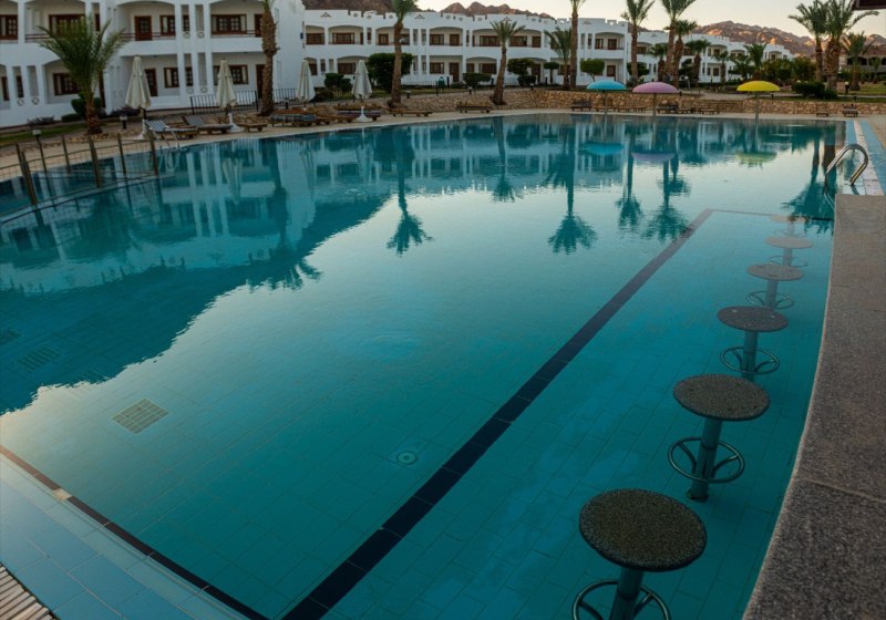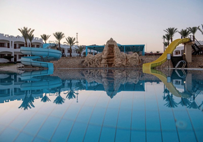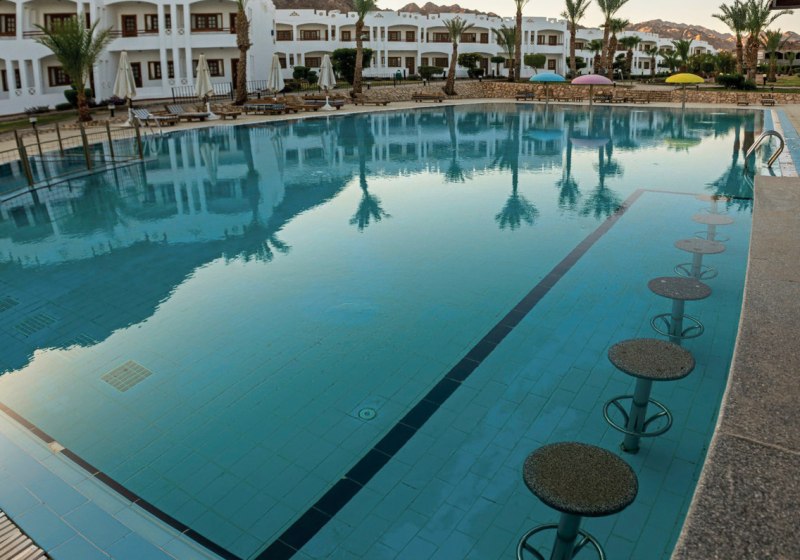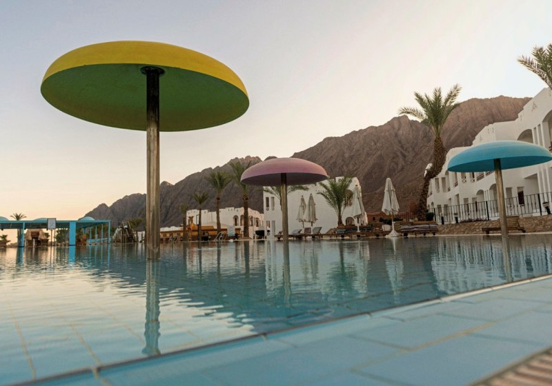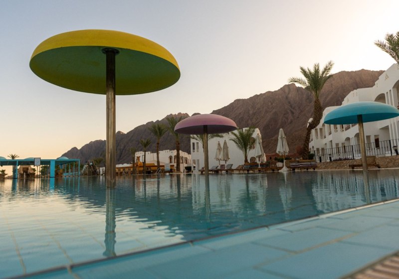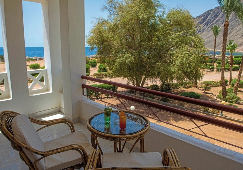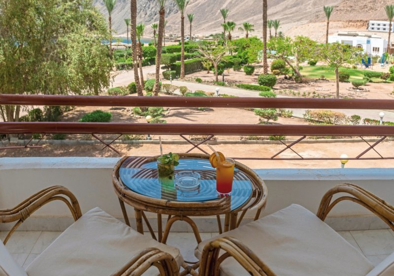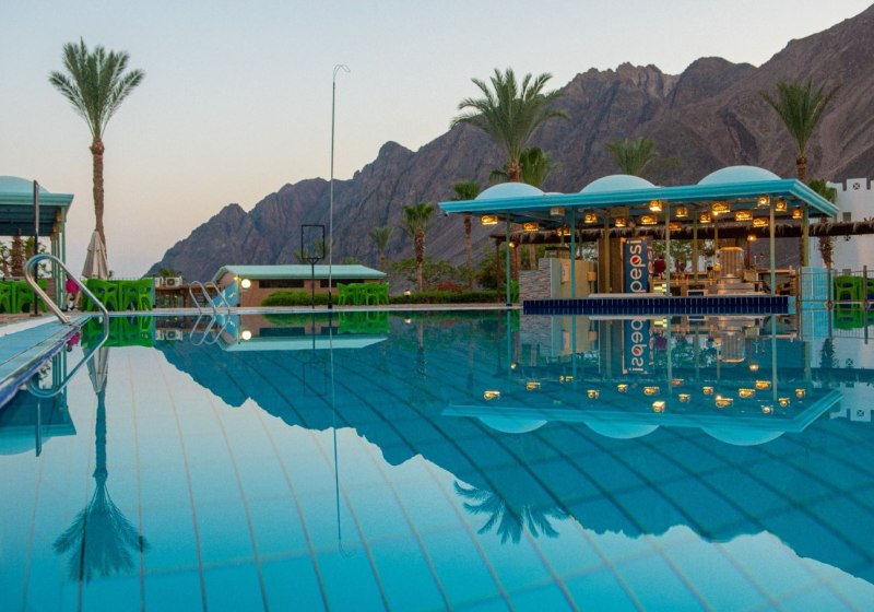 Für Euren Tagesrhythmus setzt Ihr eigene Akzente: sportlich mit Beachvolleyball, Fitness oder Wassergymnastik, gemütlich bei Shisha-Café und Poolbar, oder abends mit Shows im Veranstaltungszelt oder im Nachtclub. Zwei Buffetrestaurants versorgen Euch vom Frühstück bis zum Abendessen, drei Bars ergänzen den Tag um kühle Getränke. Dank Shuttlebus erreicht Ihr Dahab zweimal täglich, für kleinere Besorgungen dienen Minimarkt und Souvenirshops im Resort. Das Gefühl: unkomplizierte Strandtage mit klarer Struktur, kurzen Distanzen und verlässlichen Services, die Ihr nach Bedarf nutzt.