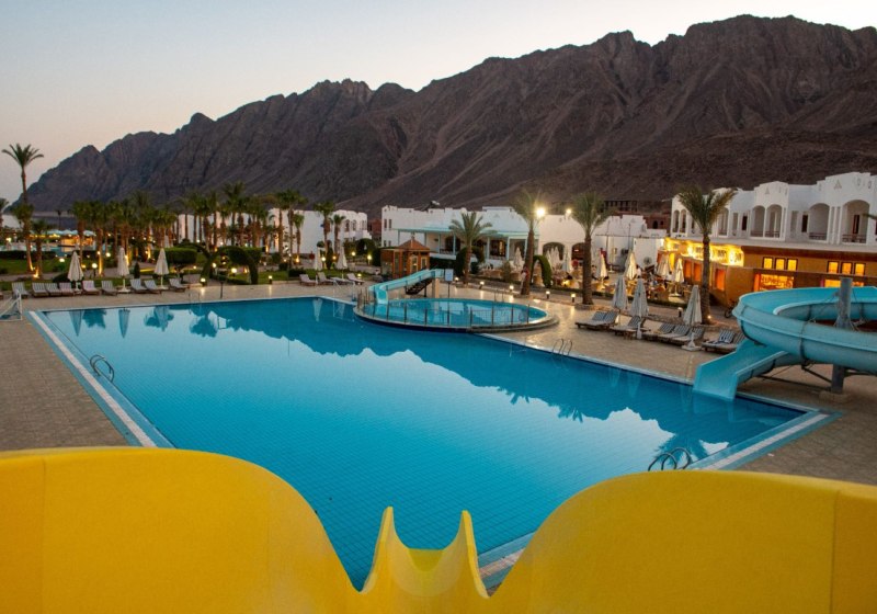 „Als strandnahes Resort mit eigenem Hausriff, drei Pools und familienfreundlicher Infrastruktur empfiehlt sich Happy Life Village für entspannte Tage am Roten Meer – mit Shows am Abend, gutem Zugang nach Dahab und klarem Fokus auf Wassererlebnisse.“