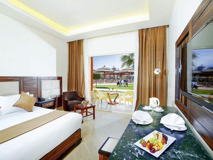 Im Mittelpunkt stehen 27 Swimmingpools, teils beheizbar, dazu Kinderbecken, Wasserspiele, Wellenbad, Lazy River und 64 Rutschen. Sonnenliegen, Schirme und Badetücher sind an Pool und Strand vorhanden. Ein Shuttlebus bringt Euch bequem zum Strand, wo Ihr den Bereich des Albatros Resort nutzt. Highlight: Dichte Servicekette und klar strukturierte Wege zwischen Zimmern, Pools, Promenade und Strand.