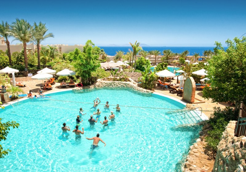 The Grand Hotel Sharm El Sheikh verbindet erhöhte Lage über dem Roten Meer mit Privatstrand und Hausriff. Acht Pools, vielfältige Gastronomie und tägliche Unterhaltung strukturieren Eure Tage. Familien profitieren von kindgerechten Bereichen und Familienzimmern, Strandurlauber von direkter Meernähe.
