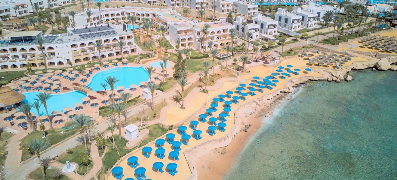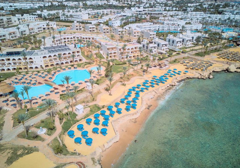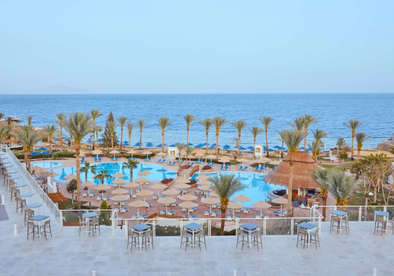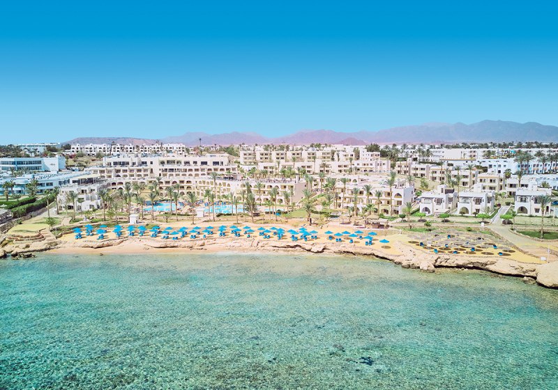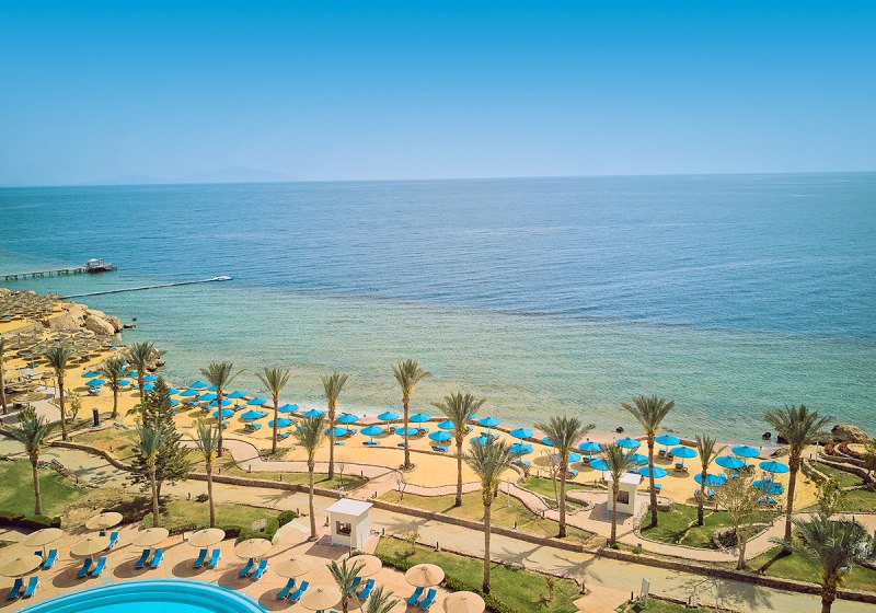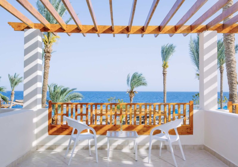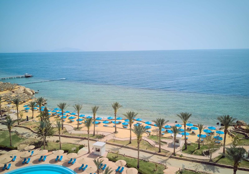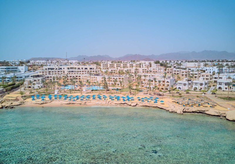 Die Lage in Sharm El Sheikh, direkt am privaten Sandstrand des Om El Seed Plateaus, formt den Rahmen für entspannte Tage am Roten Meer. Ein Steg erleichtert den Zugang ins Wasser. Zum Flughafen sind es etwa 18 Kilometer, ins Zentrum von Sharm El Sheikh fahrt Ihr rund 15 Minuten; die Altstadt liegt bei etwa drei Kilometern.