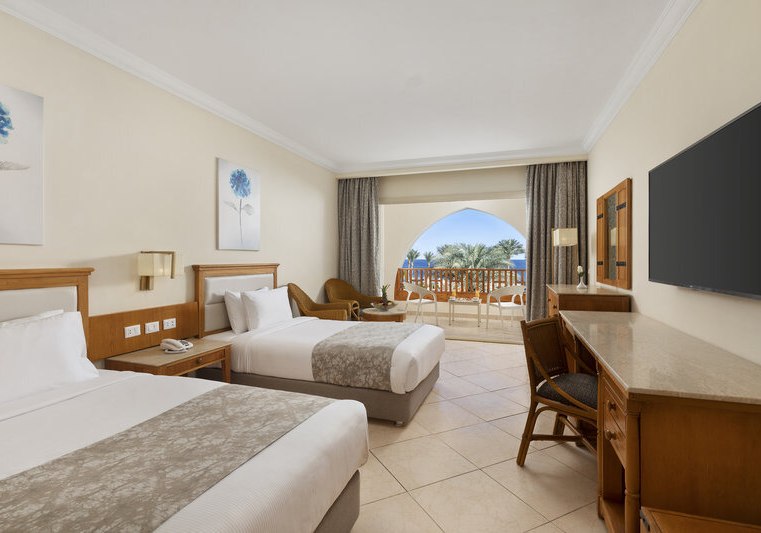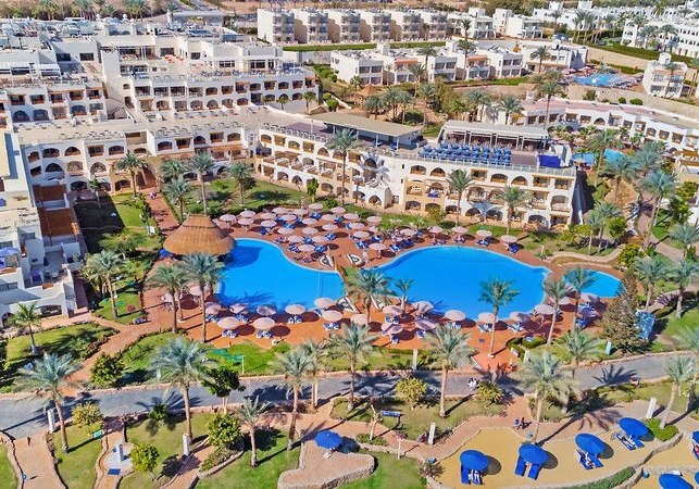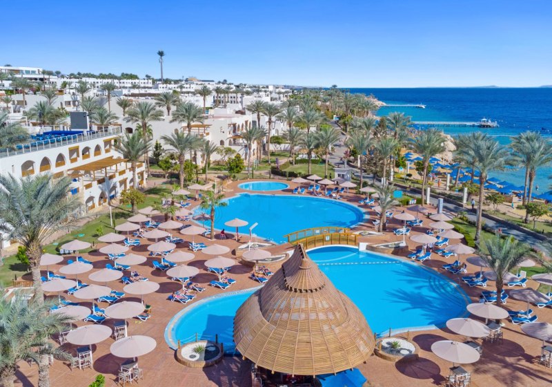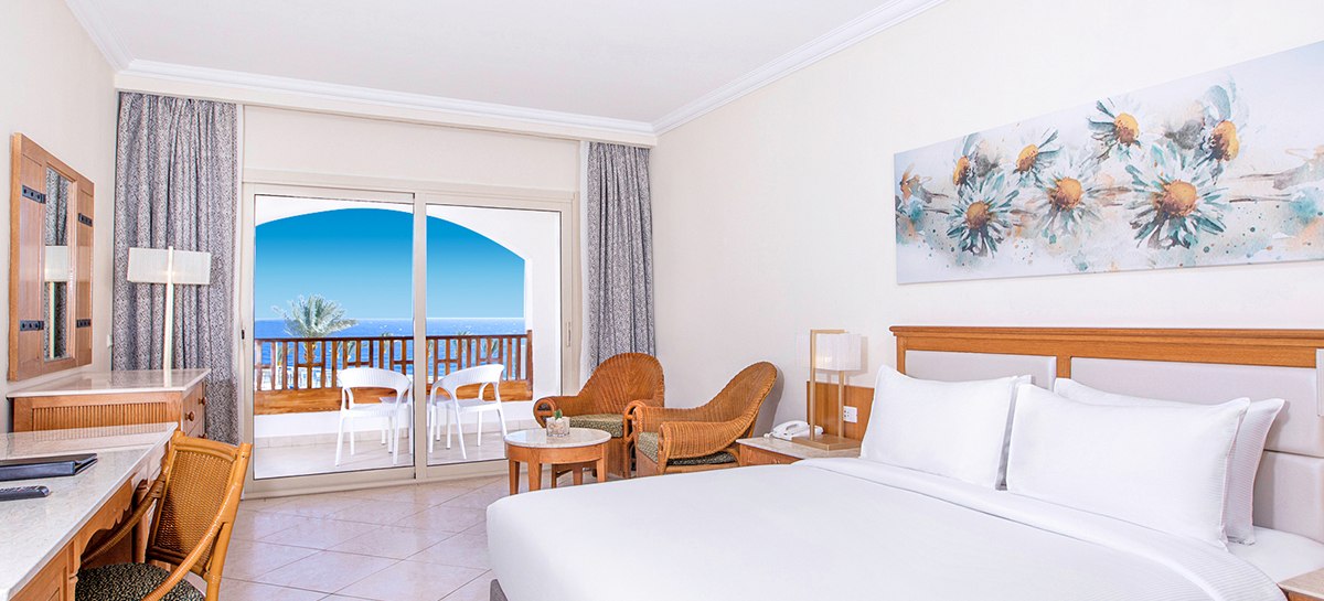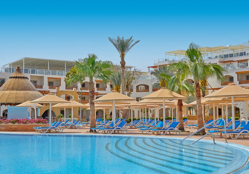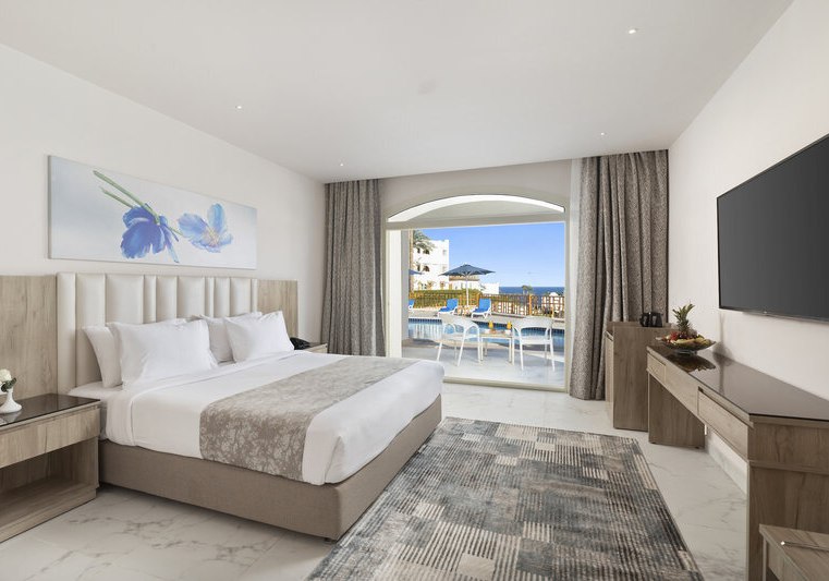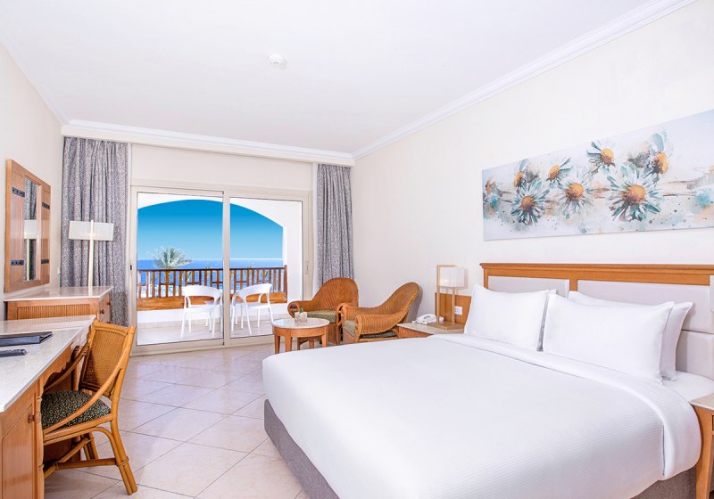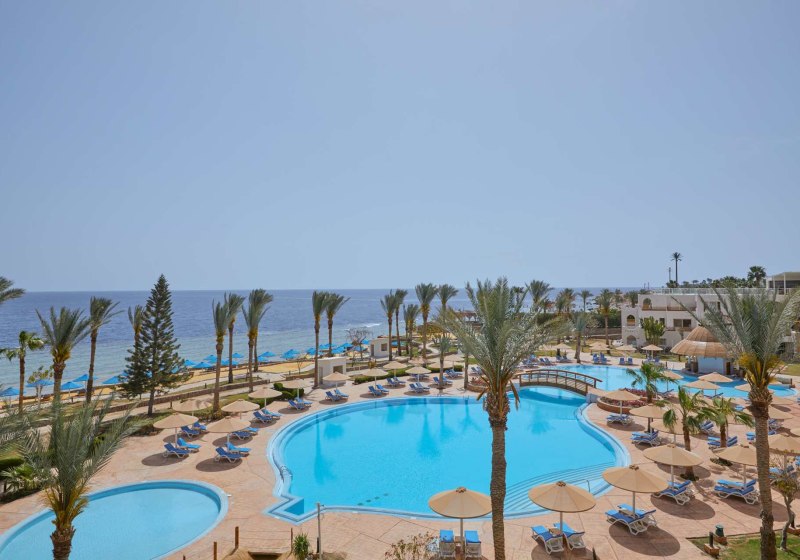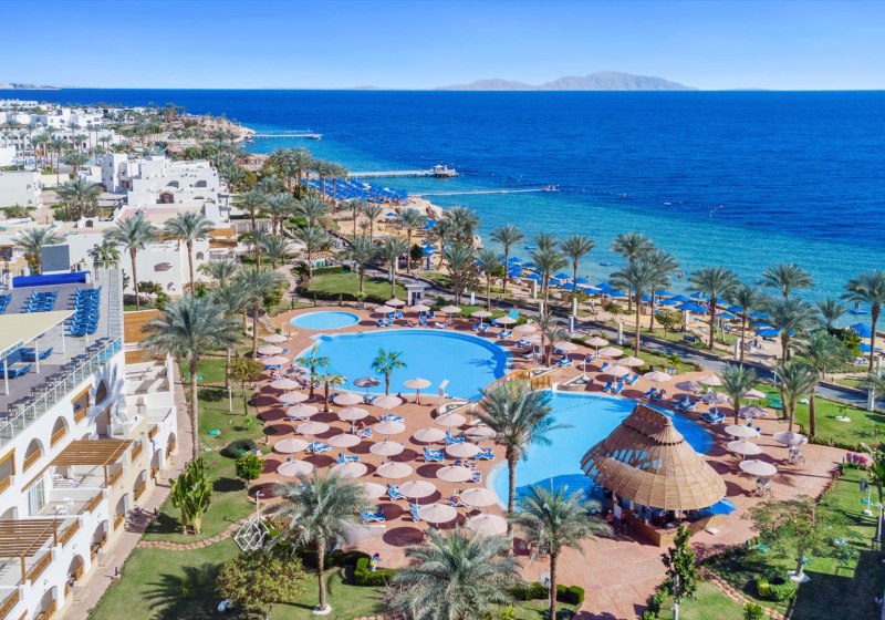 Die Lage in Sharm El Sheikh, direkt am privaten Sandstrand des Om El Seed Plateaus, formt den Rahmen für entspannte Tage am Roten Meer. Ein Steg erleichtert den Zugang ins Wasser. Zum Flughafen sind es etwa 18 Kilometer, ins Zentrum von Sharm El Sheikh fahrt Ihr rund 15 Minuten; die Altstadt liegt bei etwa drei Kilometern.