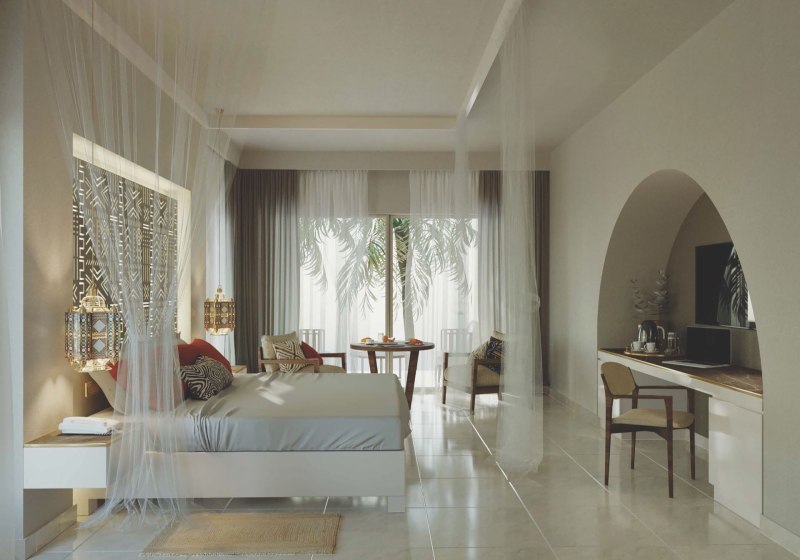 154 Wohneinheiten teilen sich in Zimmer, Suiten und Villen und folgen einem klaren Komfortstandard: Balkon oder Terrasse, je nach Kategorie Meerblick, Kingsize-Bett und begehbarer Kleiderschrank. Klimaanlage und Deckenventilator steuern das Raumklima, Smart-TV und WLAN halten Euch verbunden. Minibar sowie Kaffee-/Teezubereitung sind gesetzt, der Safe sorgt für Ordnung. Die Bäder sind mit Doppelwaschbecken, begehbarer Dusche, Kosmetikspiegel, Bademänteln und Hausschuhen ausgestattet.