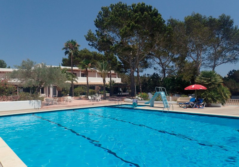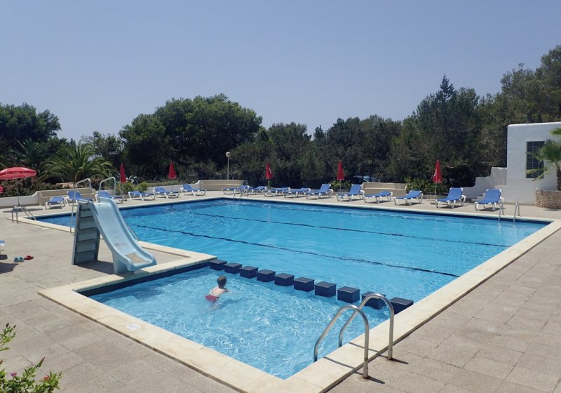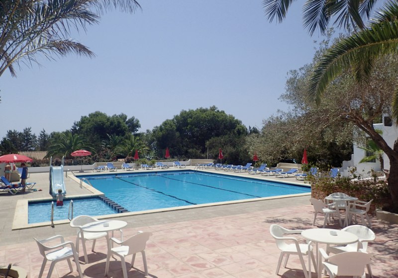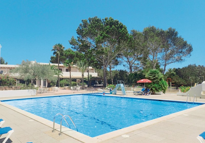 Im Ca Mari erlebt Ihr Formentera in einem überschaubaren Rahmen mit 32 Wohneinheiten, klar strukturiert und nah am Tagesrhythmus der Insel. Der Sandstrand liegt etwa 100 Meter entfernt, das Meer ist somit schnell erreicht. Am Süßwasserpool mit Miniwasserrutsche und separatem Kinderbecken verbringt Ihr entspannte Stunden, während die Sonnenterrasse mit Liegen und Schirmen den ruhigen Gegenpol bildet.