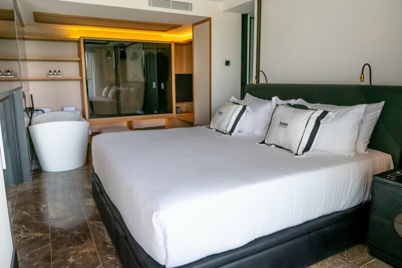 Die eleganten, luxuriösen und stilvoll ausgestatteten Zimmer und Studios im Bless Hotel Ibiza verfügen über alle modernen Annehmlichkeiten, darunter Dusche/WC, Bademäntel, Bügeleisen, Espresso-Maschine, Föhn, Sat.-TV, Slipper, Telefon, einen möblierten Balkon oder Terrasse und WLAN. Das Hotel bietet auch Zimmer mit Meerblick.