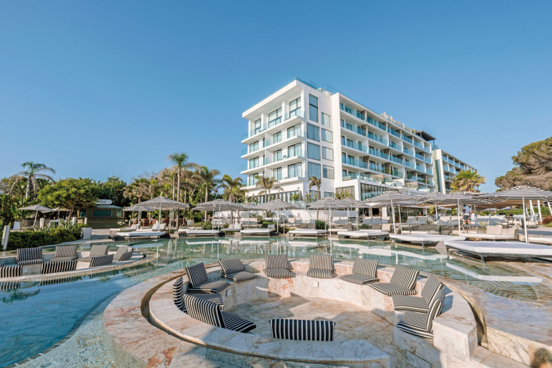 Willkommen im Bless Hotel Ibiza, einem 5,5-Sterne-Luxushotel in Ibiza, das Eleganz und Stil in perfekter Harmonie vereint. Mit seiner ruhigen Lage direkt am Meer und nur 50 m vom Sandstrand entfernt, garantiert es höchste Erholung. Das Hotel verfügt über insgesamt 151 stilvolle und luxuriöse Zimmer und Studios, die alle mit modernsten Annehmlichkeiten ausgestattet sind.