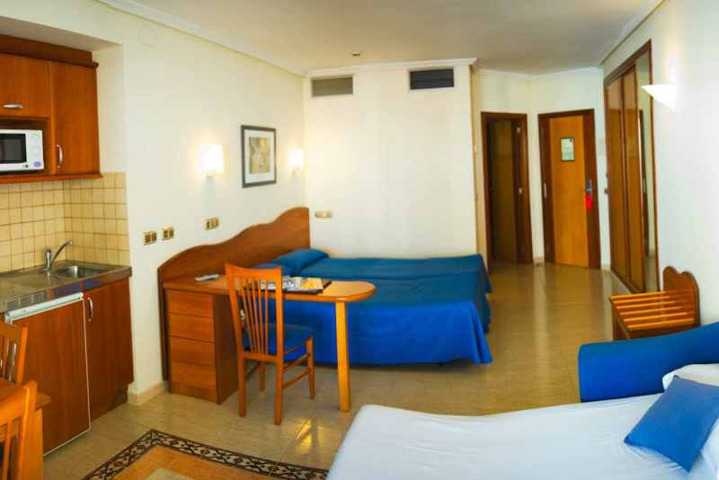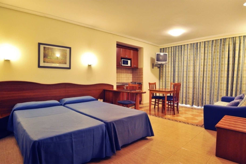 Das Blau Park liegt in der Ortschaft Sant Antoni de Portmany auf der spanischen Insel Ibiza. Ein schöner Sandstrand befindet sich in nur 20 Meter Entfernung vom Hotel. Bis zum Ortszentrum sind es 800 m. Eine Bushaltestelle finden Sie 50 Meter vom Blau Park entfernt, Einkaufsmöglichkeit in 150 m Entfernung.Zimmer / Unterbringung