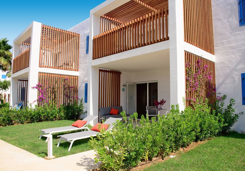 Im Cala Llenya Resort Ibiza wohnt Ihr in einer weitläufigen Anlage, die sich über eine 40.000 m² große Gartenlandschaft mit 16 Wohngebäuden verteilt. Die Atmosphäre wirkt entspannt, ungezwungen und geradlinig, mit viel Platz zwischen den Bereichen. Familien und Strandurlauber fühlen sich durch kurze Wege, klare Strukturen und vielseitige Angebote gleichermaßen gut aufgehoben. Dank Adults-Only Pool findet Ihr zugleich ruhige Zonen für konzentriertes Abschalten.