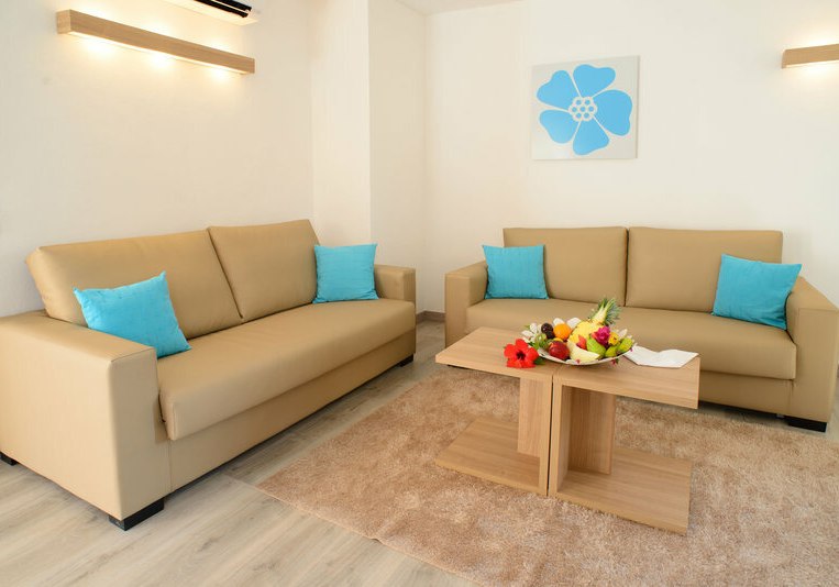 Für mehr Platz wählt Ihr Juniorsuiten mit separatem Schlafzimmer. Suiten mit zwei Schlafzimmern und zwei Badezimmern bieten familienfreundliche Struktur. Viele Einheiten öffnen sich zum Garten oder Poolbereich, einige bieten Straßenseite. WiFi, Sitzecke und Schlafsofa ergänzen je nach Kategorie den Komfort, ohne das klare Design zu überladen.