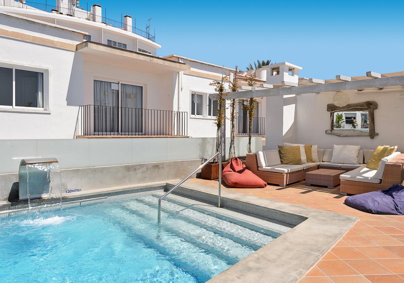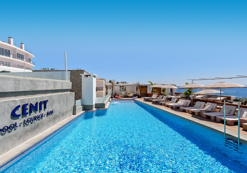 Cenit verteilt sich auf Haupt- und Nebengebäude mit drei bis vier Etagen, 63 Zimmern und einem funktionalen Grundriss. In der Empfangshalle erwartet Euch eine Rezeption, WLAN steht im gesamten Hotel bereit. Die Sonnenterrasse und der Außenpool bilden das lässige Zentrum, Liegen und Schirme sind am Pool vorhanden.